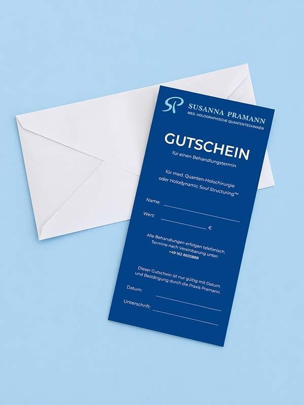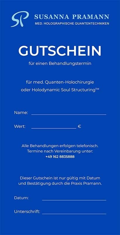 Mit einem Gutschein der Praxis Pramann verschenkst Du Anwendungen der medizinischen holographischen Quantentechniken – auf hohem Niveau.